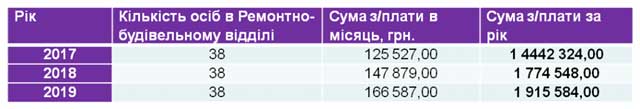 Витрати бюджетних коштів на Ремонтно-будівельний відділ