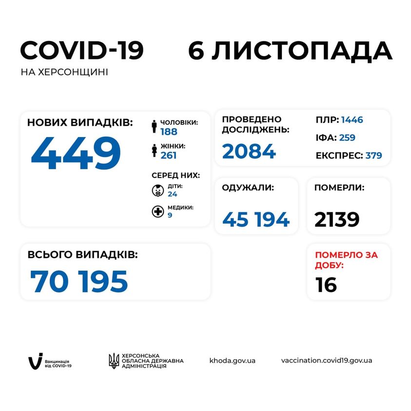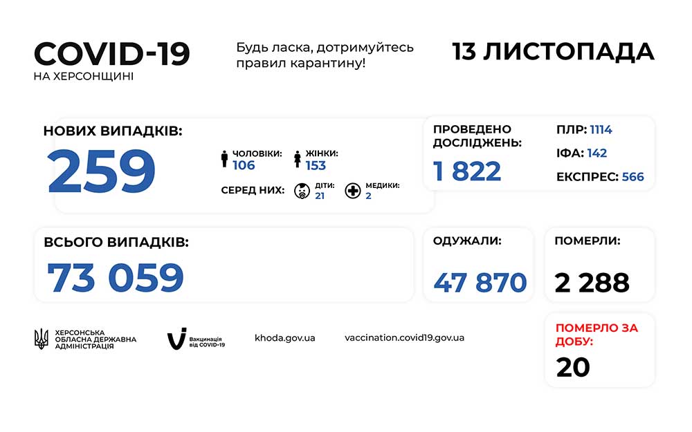 Оперативна інформація щодо поширення коронавірусу на Херсонщині 13.11.2021