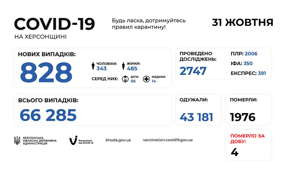 Оперативна інформація щодо поширення коронавірусу на Херсонщині 31.10.2021