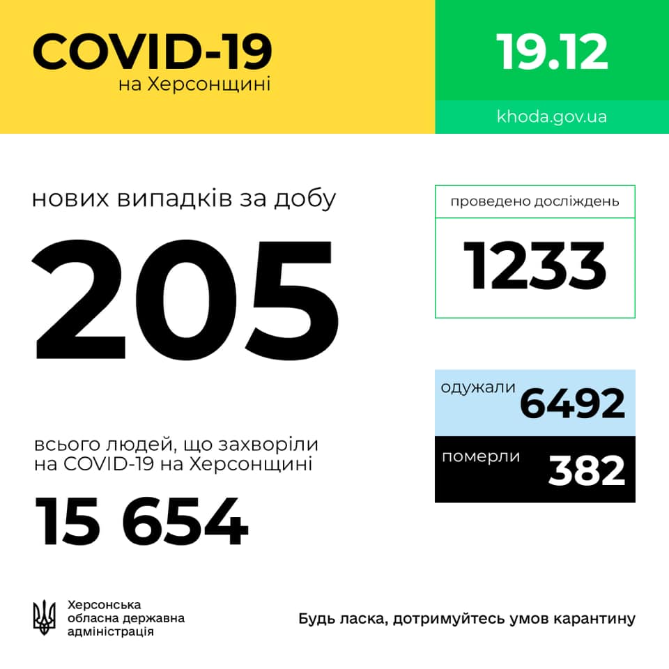 Зафіксовано 205 нових лабораторно підтверджених випадків захворювання на COVID-19, з яких 10 дітей та 10 медичних працівників.