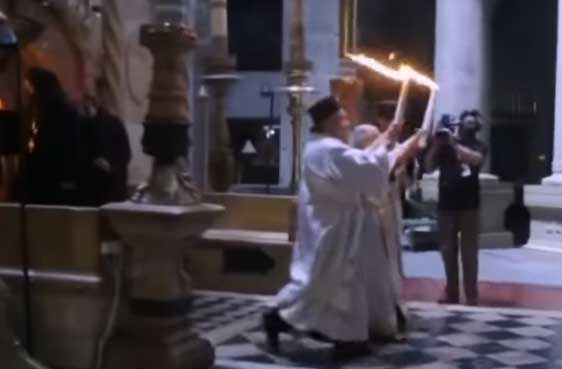 В Єрусалимі у храмі Гробу Господнього сьогодні, 18 квітня, зійшов Благодатний вогонь, передають Українські національні новини.